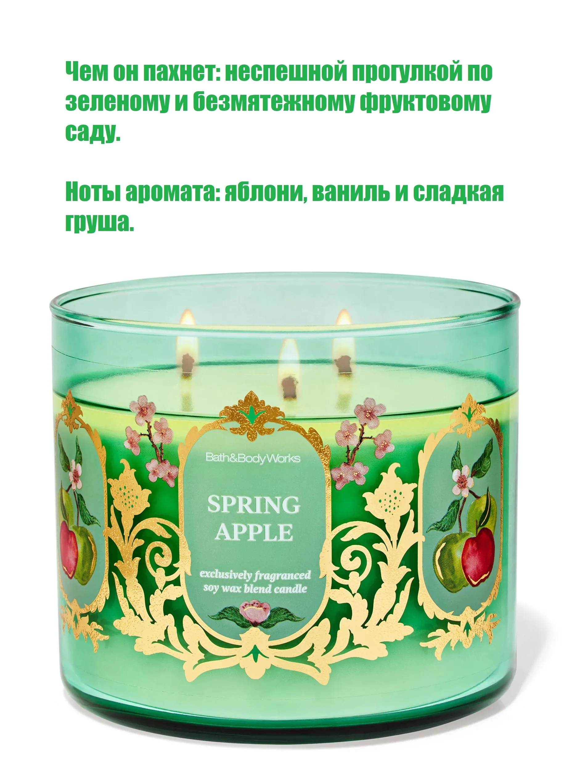 Bath and Body Works Свеча ароматическая "Чем он пахнет: неспешной прогулкой по зеленому и безмятежному фруктовому саду. Ноты аромата: яблони, ваниль и сладкая груша.", 9 см х 10 см, 1 шт