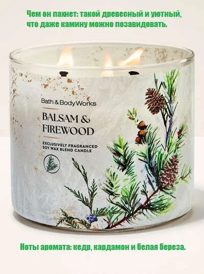 Bath and Body Works свеча ароматическая с 3-мя фитилями Balsam Firewood (411 грамм)