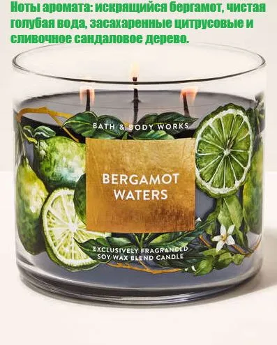 Bath and Body Works свеча ароматическая с 3-мя фитилями Bergamot Waters (411 грамм)