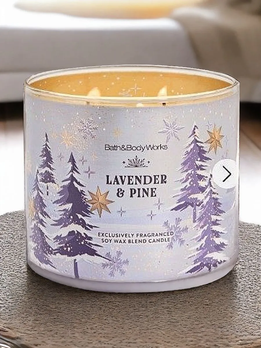 Bath and Body Works Свеча ароматическая "Ноты аромата: свежесобранная лаванда, кора кедра и матовая сосна.", 9 см х 10 см, 1 шт