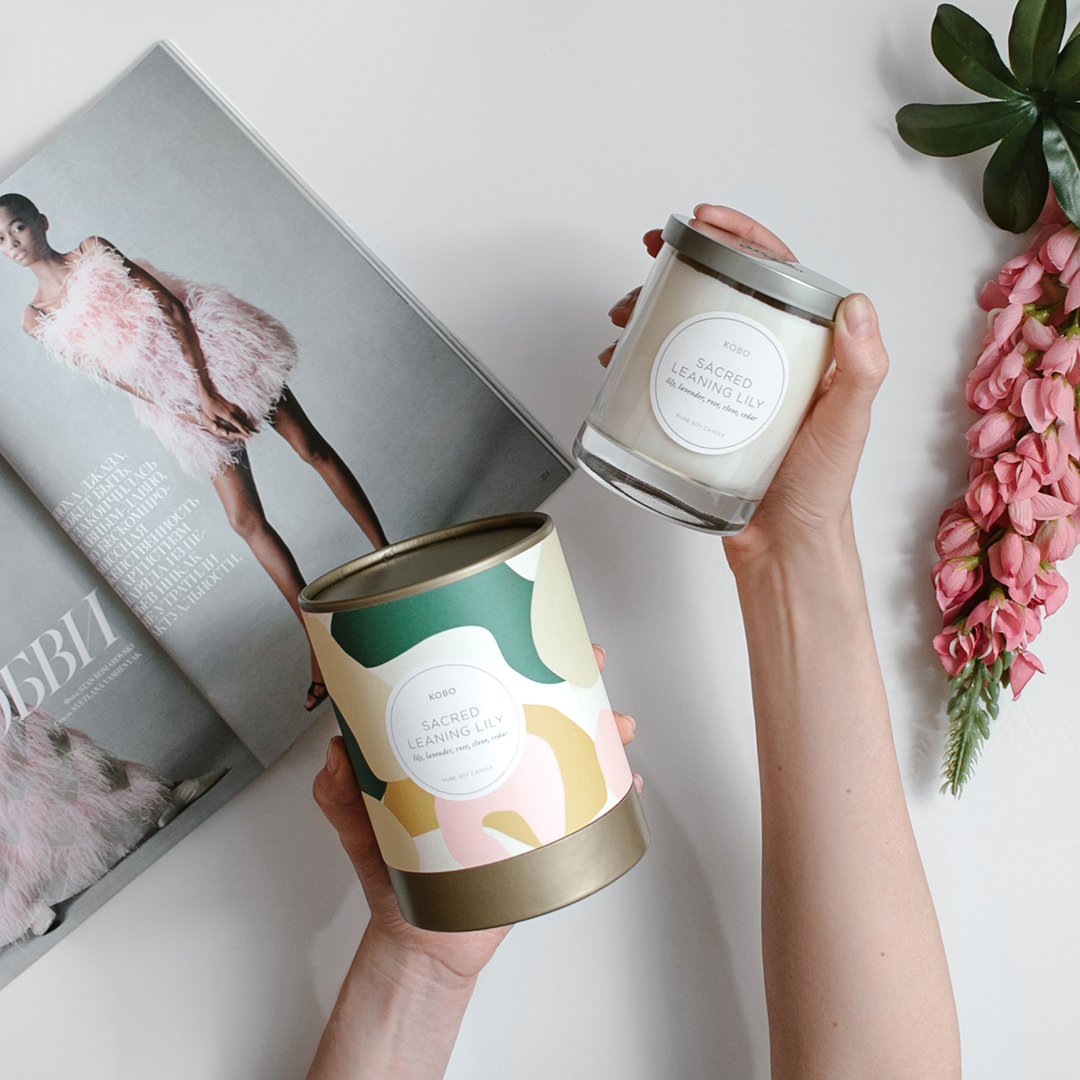 SACRED LEANIING LILY Большая свеча в стекле, KOBO Candles