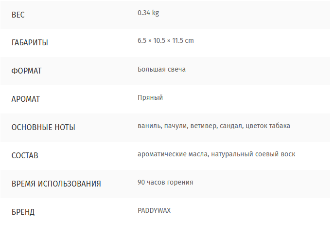 Самый продаваемый аромат PaddyWax – конечно, табак и пачули. И вот марка выпустила любимый запах в новой упаковке. Янтарное стекло, 2 фитиля, овальная форма и большой объем: эта свеча станет настоящим украшением вашего интерьера.